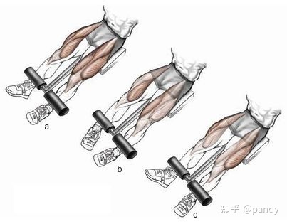 按照脚尖的方向不同,你可以分别训练到股四头肌的内侧头,骨直肌和外侧头。