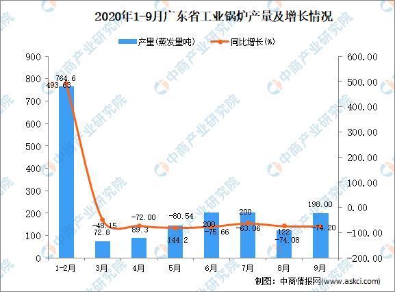 中商情报网讯:据中商产业研究院数据库显示,2020年9月广东工业锅炉产量为198蒸发量吨,同比下降74.2%。2020年1-9月广东工业锅炉产量为1800.8蒸发量吨,同比下降54.18%。