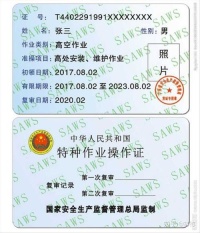 高处作业证属于特种作业操作证,由国家安全生产监督管理总局统一式样、标准及编号(但特种设备操作资格证格式与此不同)。特种作业证件至少有安监总局、质检总局、建设部考核并发证。