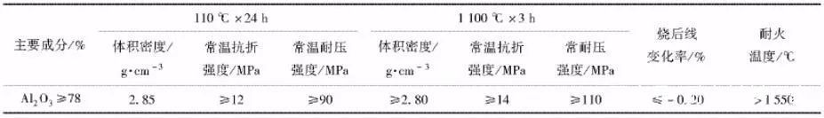 ▲表1 高强浇注料理化性能指标