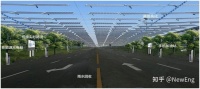 (1)大车停车区面积大,考虑大型车辆的正常通行及停靠,大车停车区内不适合设置支架等支撑结构,适合采用大跨度的柔性支架光伏系统,如下图: