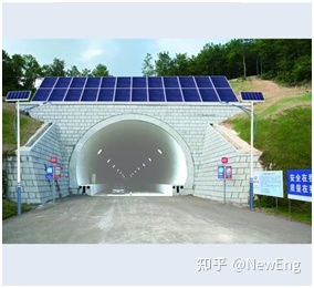 利用隧道顶部山体或隧道前方空地安装光伏发电系统,固定支架安装,安装方案如下图: