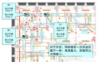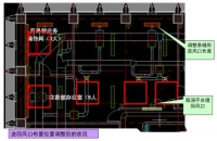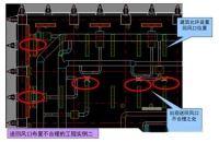 蓝圈为内区送风散流器的射流区,多个风机盘管回风口布置在送风射流范围内。导致内区送风量不够,冬季内区送冷风,风机盘管制热,冷热抵消导致能源浪费。
