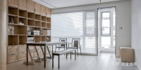 餐厨一体化设计,阳台打造独立洗手台。开放式餐厅坐落于客厅一侧,以大面积的木色呼应其整体,充足的收纳空间给生活提供便利,天花灯膜以柔和的空间线条回应空间中的建筑之美。