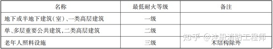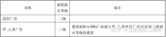 注:1.除另有规定外,以木柱承重且墙体采用不燃材料的建筑,其耐火等级应按四级确定。