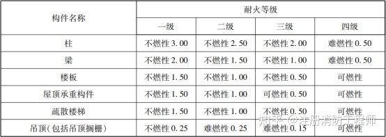 2.建筑构件的耐火性能是以楼板的耐火极限为基础的,再根据其他构件在建筑物中的重要性以及耐火性能可能的目标值调整后制定的。