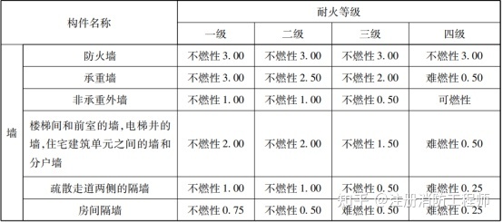 1.民用建筑的耐火等级可分为一、二、三、四级。除另有规定外,不同耐火等级建筑相应构件的燃烧性能和耐火极限不应低于下表中的规定。