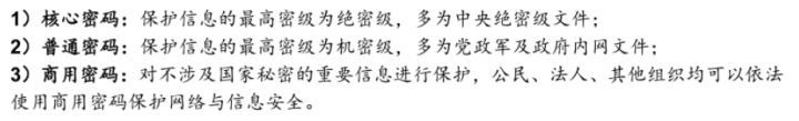 根据《中华人民共和国密码法》,我国密码分为核心密码、普通密码、商用密码三大类,商用密码是讨论的主要范畴。