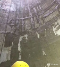 4、进行人工烘干后,选用《钾水玻璃耐酸砂浆》将整座烟囱的内壁进行3道程序抹糊(按设计要求厚度在5-15mm之间);