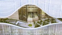在不同的光影下,建筑将呈现出完全不同的风采,白天,阳光投射在白色波浪幕墙形成的幕布上,顺着波浪起伏的建筑流淌,仿佛壮丽的光之瀑布;夜晚,通过将多媒体内容呈现在幕墙上,又令建筑呈现不同的姿态,充分地发挥本项目的展示与教育功能,给公众以最深刻的印象。