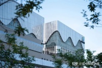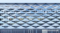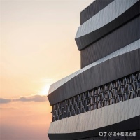 - “玉带环腰”中间环绕建筑一周的白色铝板幕墙