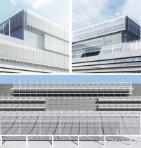 - 整体幕墙由五种不同色彩的金属板构成从而形成了丰富的色彩、肌理。