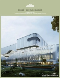 结合发电厂自身体量需求,将其屋顶的屋檐挑出,使建筑整体呈现飞扬,向上的姿态,仿佛中国古建筑的琼楼玉宇,屋顶下用通透幕墙展示其内部严谨的建筑结构,桁架形式的屋顶支撑,呼应了精巧结构和发电厂内部复杂精密的仪器,展示出独特的机器美学。建筑的整体形象端庄大气,暗示着发电厂内部稳定可靠的运行。