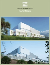 裙房部分以流动的白色环带环绕建筑,模拟蜿蜒的流水,同时增强水平向的舒展性。配合种植植物加强发电厂绿色,环保的直观感受,呈现一个清洁环保的发电厂面貌。