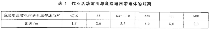 g.作业活动范围与危险电压带电体距离<下表;