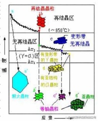 第一阶段:高温下的再结晶区变形。粗大的奥氏体多次变形和再结晶而细化,但这时由A转变的铁素体仍然较粗大;