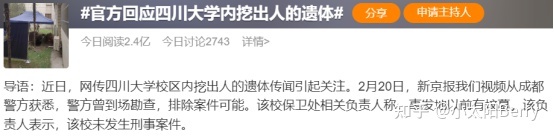 近日,四川成都。网传四川大学望江校区逸夫楼附近挖出一具人体骨骼。2月20日,四川大学望江校区保卫处工作人员称经鉴定该具骨骼为70年代之前的骨骼。并称此地在建校之前为一处乱葬岗,挖出的骨骼也并非一具完整的骨骼。同时表示此事发生后传出许多不同版本,均属谣言。2月20日,望江派出所工作人员称前几天获悉此事后派出所、刑侦大队都去了现场,未听说是刑事案件。