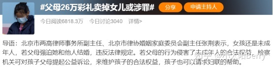 河南泽槿律师事务所主任付建认为,父母以26万强制将未成年女儿嫁出去,属于暴力干涉他人婚姻自由的行为,涉嫌暴力干涉婚姻自由罪。如果以出卖为目的,将被害人置于自己或者第三者的非法支配之下,通过对被害人施加物理的或者心理的影响,进而左右被害人的意志,使其难以摆脱行为人的影响的,可能涉嫌拐卖妇女罪。