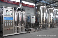 水源进水 ——原水缓存水箱 —— — 多介质过滤器 —— 活性炭过滤器 —— 阻垢装置 —— 5微米精密过滤器 —— 反渗透纯化水机组 —— 产水无菌储水箱 —— 紫外线灭菌装置 —— 用水点 —— 循环回水经紫外线灭菌后循环供至用水点;