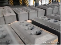 阳极炭块一般为长方体,在其导电方向的上表面有2-4个直径为160-180mm、深为80-110mm的圆槽,俗称炭碗。在阳极组装时,炭碗用来安放阳极爪头,通过磷生铁浇注,使阳极导杆与阳极炭块连为一体,组成阳极炭块组。阳极炭块根据电解槽电流的大小和工艺的不同而有不同的尺寸,但通过它的电流密度一般为0.70-0.76A/立方厘米,使用周期为20-28天。