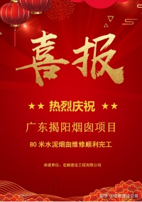祝贺广东揭阳80米水泥烟囱维修顺利完工