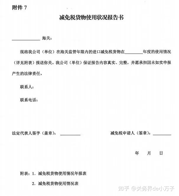 搜索海关总署公告2021年第16号,下载公告的附件7《减免税货物使用状况报告书》及附表,并按要求填写表格。
