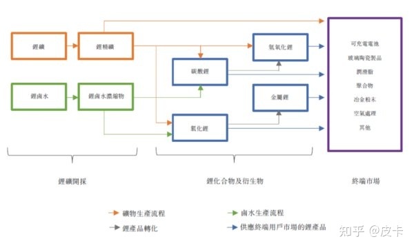 从产业链上下游来看,锂行业的上游产业主要为天然矿产资源,从形态上可分硬岩锂和卤水锂两大类;中游产业主要是将上游矿产资源中的锂元素提取出来并形成锂化工产品,主要包括氢氧化锂、碳酸锂、氯化锂等;下游则是将中游生产出来的锂化工产品可用于电池、陶瓷和玻璃、润滑剂等生产制造,并应用于新能源汽车、消费电子、储能、航空、机械、医药等行业。