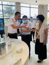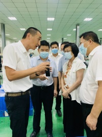 领导一行参观了工厂生产线,供应链经理曾勇介绍了现代化生产车间和高标准的生产工艺,王吉德主席对企业作为陕西省消毒防疫物资保供企业,支援抗疫一线,保证全省供应、助力复工复产的担当作为表示高度赞扬。