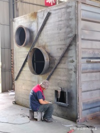 (3)进出口管道:一般进口烟气管道是在筒体的下侧放进入,出口烟气管道在顶盖的中央,也有的是另一侧上方引出。
