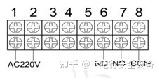 压差报警器内有一个8P接线端子排,如右图,1、2接220V交流电,6、7、8分别为继电器的常闭、常开、公共端。