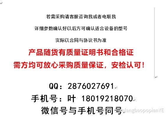 若需采购请客服咨询我或者电联我,详细参数确认好以后方可确认适合设备的型号,实际以合同与协议书为准。