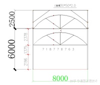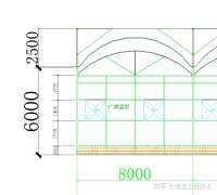 1、双拱在横梁顶部的结构,此种结构外拱和内拱在立柱的间距是0.5米,基本上不占用连栋温室大棚内部空间。这种设计温室大棚的立柱可以在4~6米都可以的。