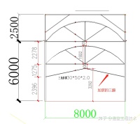 一种方法是在圆拱的内部加装斜三角拱,三角拱采用30*50*2.0热镀锌方管,两侧用连接件和立柱连接,中间用连接件连接。顶部做一趟串杆,串杆采用32*2.0圆管。如果不考虑顶部通风两侧可以直接封死薄膜,两侧的薄膜固定在一趟小水槽上。