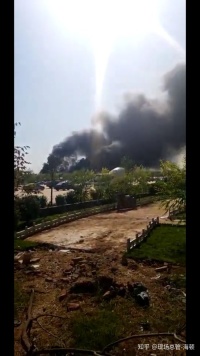 2018年9月22号,河北省邯郸市广府,古城景区一游乐园的一架小型飞机坠落,引起地面着火,在视频当中可以看到滚滚的黑烟。