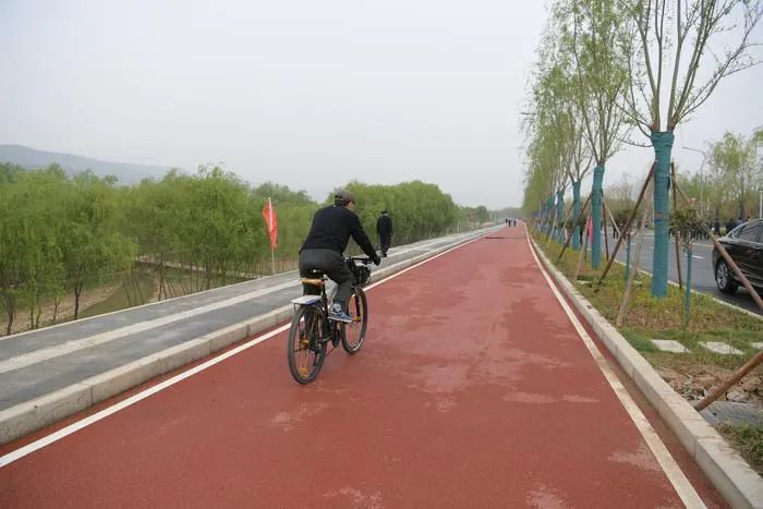 市水务局建设任务为渭河南岸约27.2公里绿道。绿道提升工程以现状河堤骑行道及查险道改造为主,结合绿道系统衔接与服务设施完善,沿线营造特色植被景观,保证绿道慢行畅通、功能齐全,充分展现了渭河特色的郊野景观与历史文化。截至目前,该段绿道主游径贯通,路面铺装也已完成;9处桥涵基本贯通;12处驿站,主体结构基本完成;已完成绿化12.4万平方米。