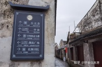 古镇墙上的指路牌,清晰明了,与老屋斑驳的马头墙,形成明显的反差。为游人指向景点方位。