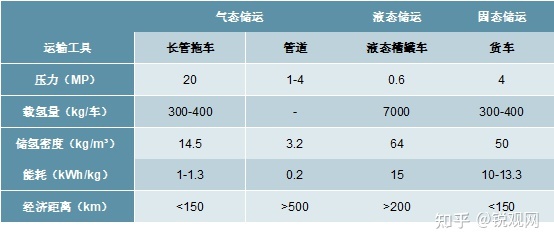 不同氢气储运方式对比