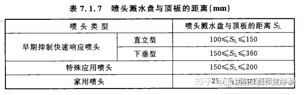 直立下垂家用喷头溅水盘与顶板的距离不超100,