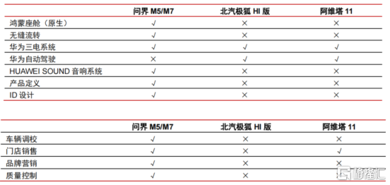 而相比HI模式,华为汽车在智选车模式中参与度更深,这从相关车型的配置比较中,便可看出一些端倪。