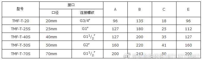 nTMF-T电磁脉冲阀型号规格表(mm)