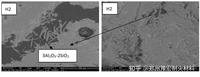 图中9试样H0的气孔较多,炉渣通过这些气孔不断向浇注料的内部渗透,从钢渣成分的化学分析看出,钢渣中存在大量的CaO、Fe2O3等低熔物,这些低熔物进入试样后形成铝酸四钙及铝酸钙等低熔点相,对试样进行不断的侵蚀。图10中试样H2中加入了活性氧化铝粉和试样中剩余的硅微粉容易形成莫来石相,随着莫来石相的形成体积会伴随一定的体积膨胀,使浇注料的结构更加致密,体积密度增大、气孔率降低,能够有效阻止钢渣的侵蚀,能够提高材料的抗渣性能;而过多的活性氧化铝粉的加入,除了形成莫来石,也会和铝酸钙水泥形成CA6,CA6的形成也有一定的体积膨胀,而体积膨胀过大,将导致浇注料中的缺陷增多,抗渣性能下降。