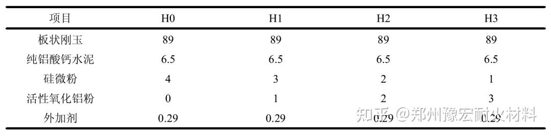 硅微粉的出现为开发低水分、低水泥和超低水泥浇注料做出了极大贡献,利用硅微粉的特殊性能能够极大的提高浇注料的中温强度,但同时也限制了浇注料的使用温度[2,3]。而加入部分高性能的活性氧化铝在不定形耐火材料中能够提高坯体密度、流动性、强度,提高二次莫来石生成量等,降低加水量和气孔率等性能[4]。