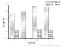 不同加入量的活性氧化铝粉对铝硅系材料抗折强度、耐压强度和线变化的影响见图3、图4、图5所示。随着活性氧化铝加入量的增加,硅微粉加入量的减少抗折强度和耐压强度是先增加再减少,试样H2的强度达到最大值。这是由于低温下Al2O3细粉附着于硅灰所形成的网状链上,使试样具有较高的低温强度;而随着温度的升高1200℃以后由于活性氧化铝和硅微粉的反应形成较大的莫来石晶体,由于莫来石的针状交错晶体和原网络链的双重作用,提供给试样较高的中、高温烧后强度,活性氧化铝粉有利于高温下莫来石相的形成,根据莫来石生成的条件,配方中根据氧化铝粉和氧化硅粉配方H2可以达到形成莫来石的最大量,所以强度最大;而随着活性氧化铝粉含量的增加,过多的活性氧化铝粉会与铝酸钙水泥形成液相,不利于材料的高温性能。