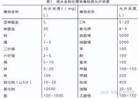 在废水生物处理过程中,应严格控制有毒物质浓度,但有毒物质浓度的允许范围尚无统一的标准,表1的数据仅供参考。