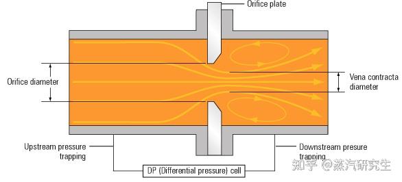孔板式蒸汽流量计是差压式流量计的一种。简单的说,流体流经一个收缩截面,测量通过此截面的压差。根据丹尼尔伯努力在1738年的研究工作,流体流经孔板的速度和其压力损失的平方根成比例关系。其它差压式流量计有文丘利管和喷嘴。