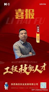 根据《西咸新区“秦创原创新人才计划”认定办法(试行)》,西咸新区党工委人才办组织开展了首批“秦创原创新人才计划”申报评审工作。经过征集申报、初步审核、专家评审、实地考察、会议研究等程序,并报新区党工委审定同意,陕西海创实业发展有限公司总经理李海福被认定为秦创原创新人才计划之工程技能人才。