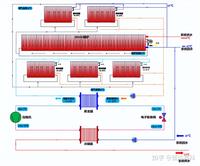 (3)设备选型:锅炉热功率28MW(40T);选用二次冷凝器5组,每组换热器19片,蒸发器为2800kW的水源电热泵螺杆机组1台。