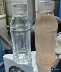 洗涤厂蒸汽发生器锅运行大约7个月后,该洗涤厂洗衣房的管设备的师傅发现,蒸汽发生器炉水发红、排污水颜色发红(下图右),加大排污不能解决问题;高温蒸汽冷凝水外观颜色比较纯净通透(下图左)用高温蒸汽冷凝水洗过的白色布草、床单颜色发暗发红。