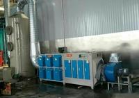 UV光解利用特制的高能高臭氧UV紫外线光束照射恶臭气体,改变恶臭气体的分子链结构,使有机或无机高分子恶臭化合物分子链,在高能紫外线光束照射下,降解转变成低分子化合物,如CO2、H2O等