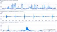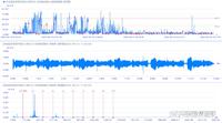 从头轮驱动端H加速度三图联动(图2、图3)可以看出,机组运行至4月17日,频繁出现加速度峰值达到报警线时刻,时域波形存在明显0.44Hz的周期性冲击频率。分析为头轮处存在以头轮转频为特征的冲击。机组关注运行,择机对头轮处进行故障排查。
